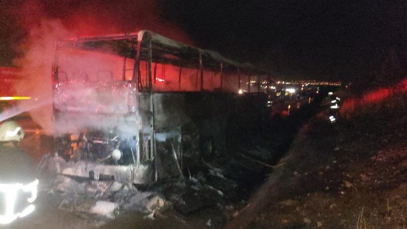 Osmaniye'de yolcu otobüsü seyir halindeyken motor kısmında yangın çıktı. Sürücüsünün yolun sağına park ederek yolcuları indirdiği otobüs kısa sürede alev topuna döndü. İtfaiyenin müdahalesiyle söndürülen yangında yaralanan olmazken, otobüs kullanılamaz hale geldi.