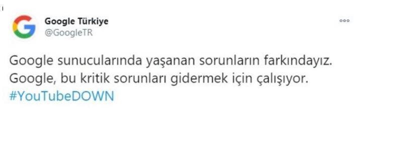 Google Türkiye, Twitter'dan bir paylaşım yaparak sorunun giderilmesi için gerekli çalışmaların yapıldığını belirtti. Yapılan paylaşımda, Google sunucularında meydana gelen sorunların farkında olduklarını dile getiren Google yetkilileri, sorunun giderileceğini söyledi.