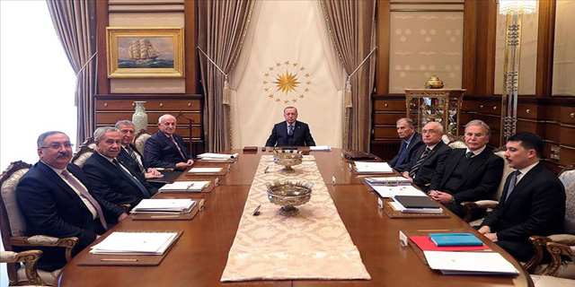 Cumhurbaşkanlığı Külliyesi'nde gerçekleşen toplantı basına kapalı yapılıyor.