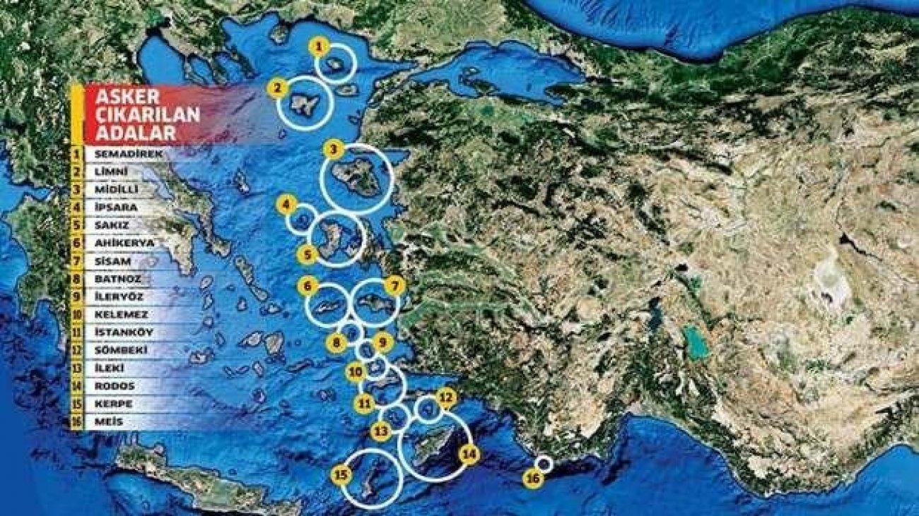 Yunanistan, Rodos'a 1 mekanize tümeni; İstanköy'e 1 mekanize tugayı konuşlandırdı. Batnoz, Lipso, İleriye, Kelemez, İstanbulya, İncirli, Sömbeki, İleki, Kerpe ve Meis olmak üzere toplam 10 adaya da tabur- alay seviyesinde askeri birlik konuşlandırdı. Yunanistan, İstanköy ve Rodos Adası'na havaalanları inşa etti. Ege Denizi'nin güneyinde, gayri askeri statüdeki 14 adadan 12'si silahlandırıldı.