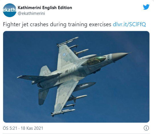 Yunanistan'a ait F-16 düştü!Yunanistan Hava Kuvvetlerine ait F-16 Blok 52+ savaş uçağı kaza kırıma uğradı.18 Kasım 2021, Perşembe - 17:30 Yunanistan Hava Kuvvetlerine ait F-16 Blok 52+ savaş uçağı kaza kırıma uğradı.Andravida Hava Üssü'nde düşen uçağın pilotu kurtulmayı başardı.Kaza, eğitim tatbikatları sırasında meydana geldi.Bakan Fidan: Netanyahu hükümetinin Filistinlileri tehcir emelinin önüne set çekildi Etiketler: Yunanistan F-16