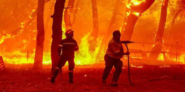 Yunan basınındaki haberlere göre, kontrol altına alınamayan yangın, geniş ormanlık alanın bulunduğu Vrisa Bölgesi'ne doğru yayılmaya başladı.