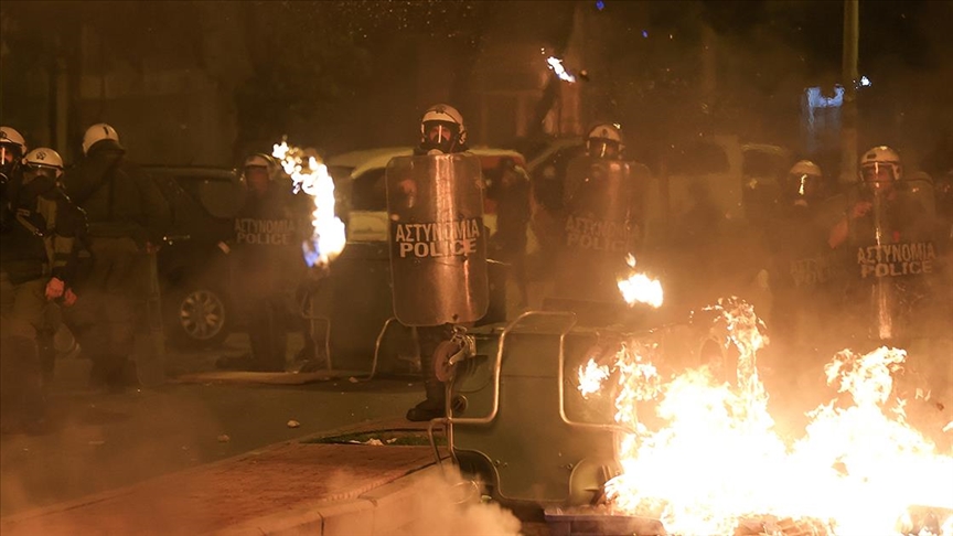 Atina'nın merkezinde bir araya gelen binlerce eylemci, polis şiddetini kınayan sloganlar atarak Parlamento binasına doğru yürüdü.