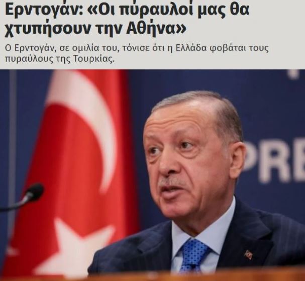 ERT televizyonu, "Erdoğan, Atina'yı füze saldırısıyla tehdit etti" diye yazdı.