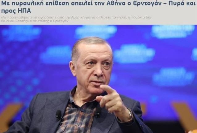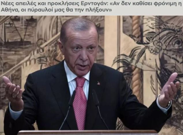 Skai televizyonu da haberinin başlığında "Erdoğan'dan yeni tehditler ve meydan okumalar" diye yazdı, devamında "Atina usluca oturmazsa füzelerimiz onu vurur." denildi.