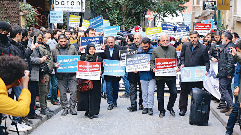 Yunanistan’ın İstanbul Başkonsolosluğu önüne gelen İHH, Özgür-Der, Uluslararası Mülteci Hakları Derneği, MAZLUMDER, AKMER, Davet, Muştu Gençlik ve Rahmet Yolu derneklerinin üyeleri, ellerinde dövizlerle düzensiz göçmenlerin ölüme itilmesini kınayan sloganlar attı.