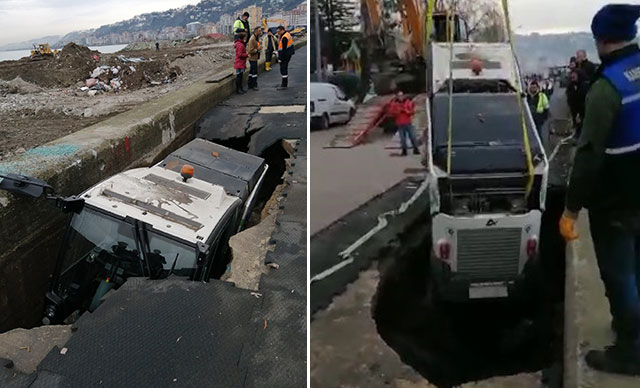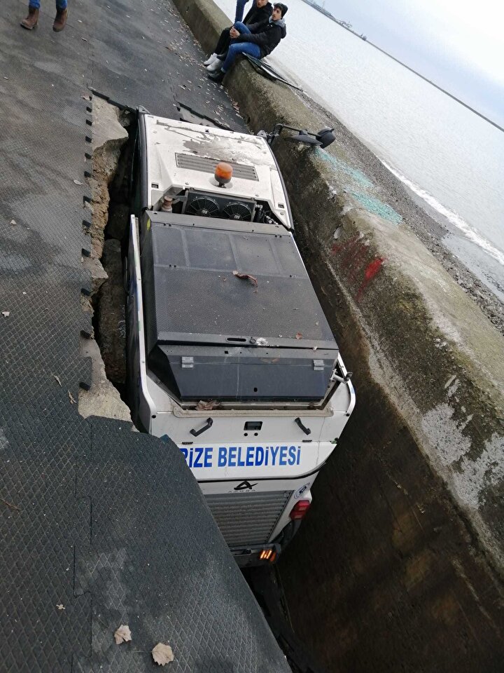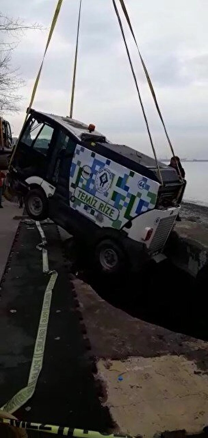 Olay, dün akşam saatlerinde kent merkezindeki Mesut Yılmaz Sahil Parkı’nda meydana geldi. Rize Belediyesi’ne ait süpürme aracı, denize dolgu yapılarak kazanılan parkta yer alan yürüyüş bandını süpürdüğü sırada aniden göçük oluştu. Temizlik aracı, göçükle oluşan çukura düştü. Olayda yara almayan sürücü, çukura gömülen ve camı kırılan araçtan çıkmayı başardı. Temizlik aracı, vinçle bulunduğu çukurdan çıkarıldı. Belediye ekipleri çukuru kapatarak, önlem aldı.