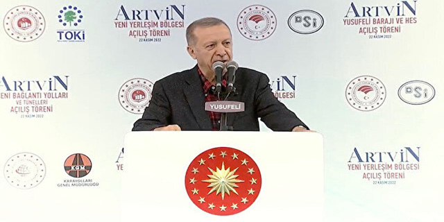 Türkiye'nin son 20 yılında ülkemize kazandırdığımız eser ve hizmetlerle asırlık eksiklerini gidermekle kalmadık daha büyük hedeflere yöneldiğimiz geleceğe hazırladık. Hemen her konuşmamda 2002 Türkiyesi'yle bugünkü Türkiye'nin mukayesesini yapmaya özen gösteriyorum. Tüm uzanan mukayeseli anlatım bazılarına sıkıcı geliyor olabilir. Bir örneğini ifade ettim. İlk 80 yılında sahip olabildiği toplam tünel uzunluğu 50 km idi. Sadece Yusufeli'ndeki tüneller 62 km'yi buluyor. Önümüzdeki sene toplam tünel uzunluğumuz 720 km'ye ulaşmış olacak. Hangi alana bakarsanız bakın benzer düzeylerde artışlar görürsünüz. Bunca yatırım ve emeği niye gösterdik. Biz sizi seviyoruz. Biz bu milleti seviyoruz. Bizim bu millete bir aşkımız var aşkımız. Bu millet için varız, Türkiye için Türkiye sevdalısı olarak Türk milletinin sevdalısı olarak bu yolda yürüdük, yürüyoruz.
