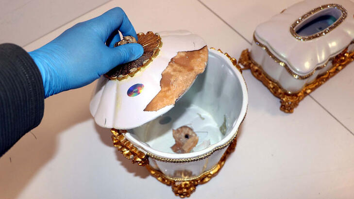Dedektör köpeklerin tepki vermesi üzerine açılan gönderinin içerisinde iki adet süs eşyası olduğu görüldü. Kutuda başka bir şey bulunmaması ve köpeklerin gösterdiği tepki üzerine eşyalarda uyuşturucu olabileceği ihtimali göz önüne alınarak süs eşyaları uyuşturucu testine tabi tutuldu.