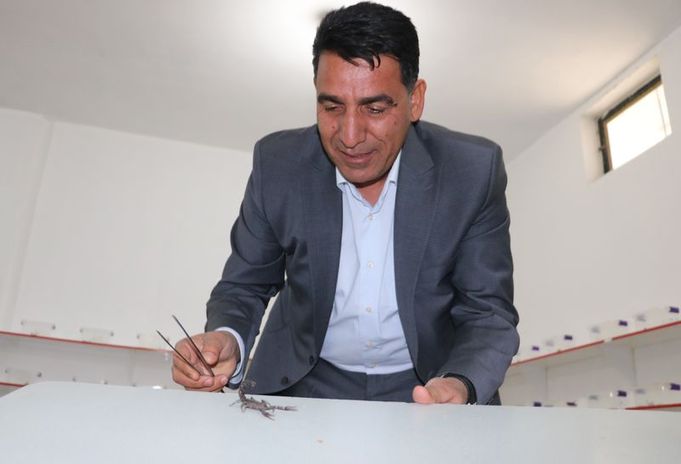 Tesiste binlerce akrebin bulunduğunu ve hepsinin en değerli tür olan kara akrep olduğunu ifade eden Yılmaz, kara akrebin zehrinin, bilinen bütün akrep zehirlerine karşı panzehir olarak kullanıldığını söyledi.