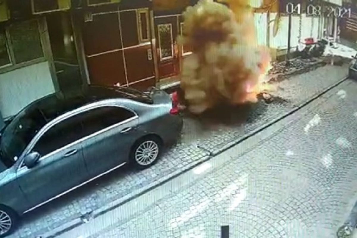 Görüntülerde sokak üzerinde bir işçinin kazma ile kazdığı esnada patlamanın yaşandığı görülüyor.