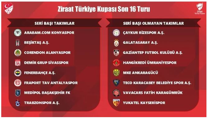 Türkiye Kupası'nda son 16 eşleşmeleri şu şekilde: