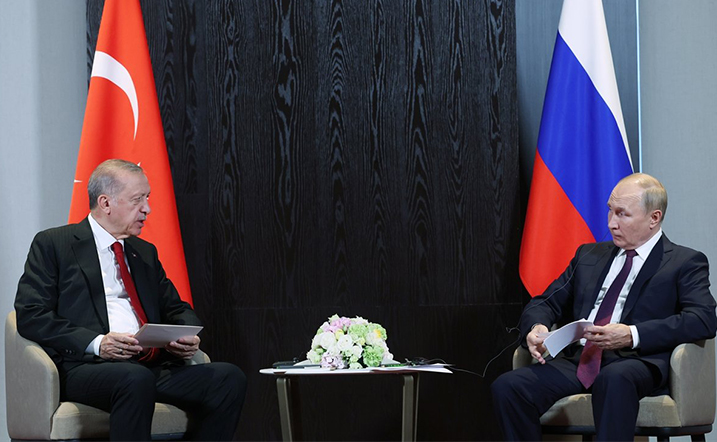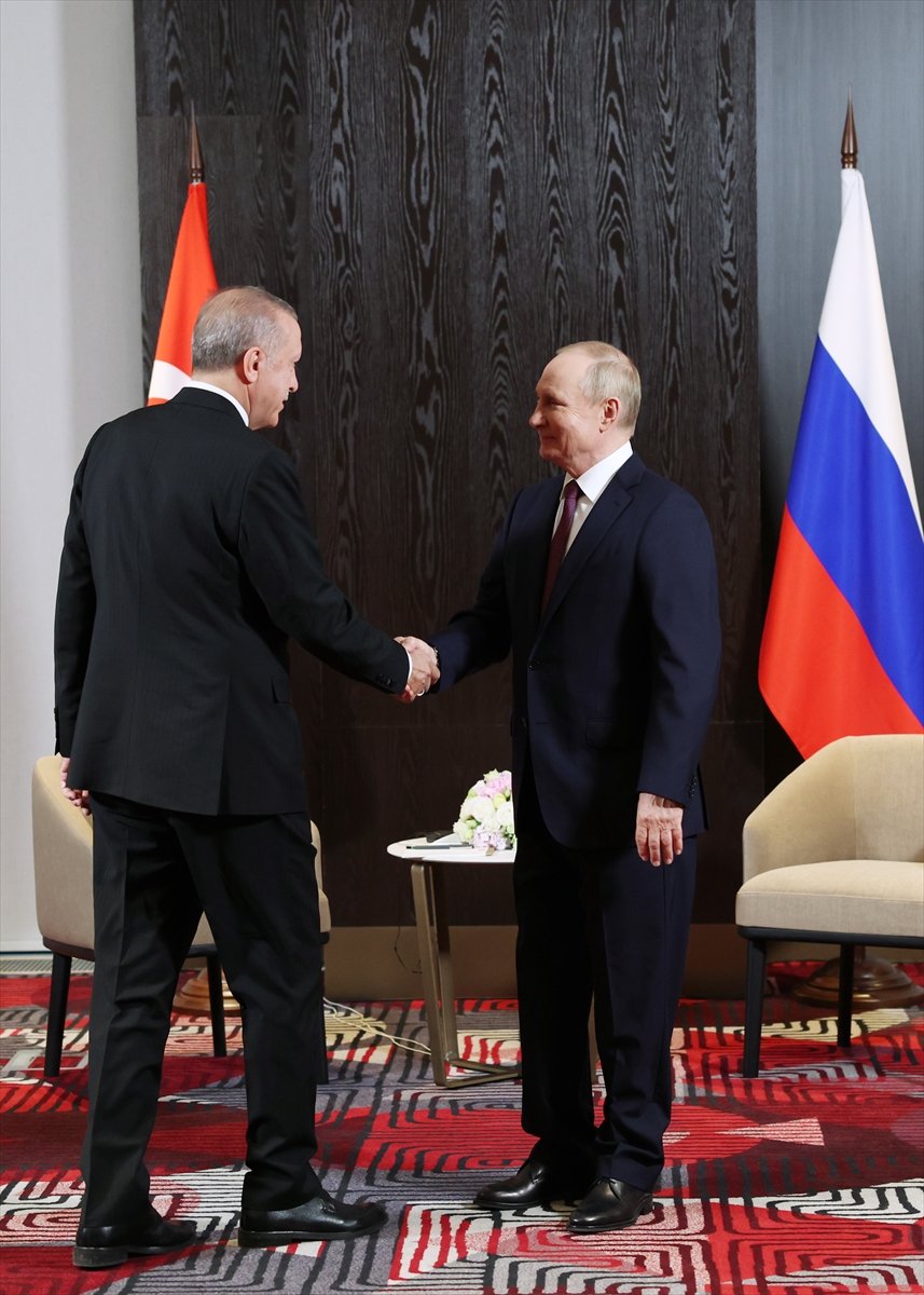 Erdoğan, Şanghay İşbirliği Örgütü 22'nci Devlet Başkanları Zirvesi'ndeki temasları kapsamında, Rusya Devlet Başkanı Putin ile bir araya geldi.