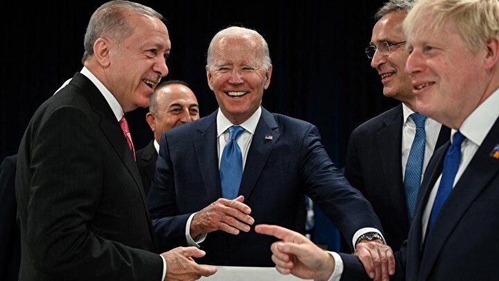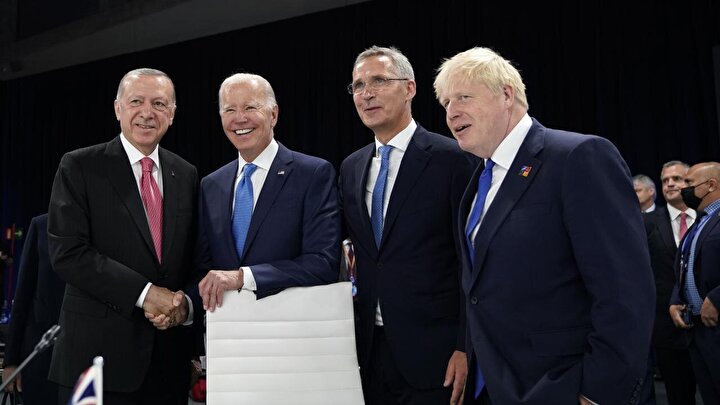 Tokalaşan iki lider daha sonra NATO Genel Sekreteri Stoltenberg ile birlikte gazetecilere poz verdi. İki lider daha sonra İngiltere Başbakanı Boris Johnson`un yanına geçip ayak üstü sohbet etti.