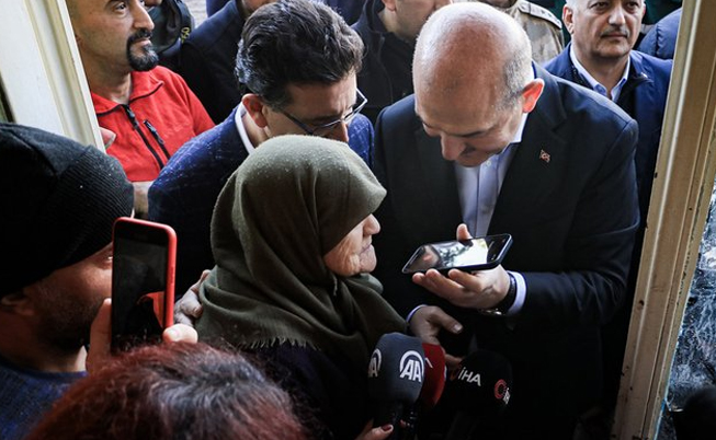 Bu sırada pide restoranı işletmecisi Zülfiye Ceylan da Bakan Soylu'nun yanına geldi.