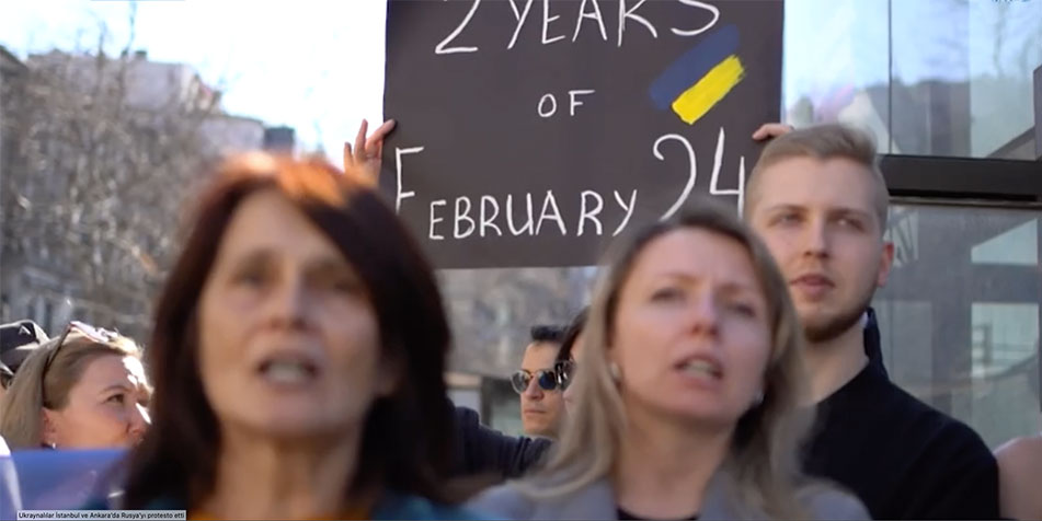 Ukraynalılar, Rusya-Ukrayna savaşının ikinci yılında İstanbul ve Ankara'da protesto gösterisi düzenledi. İstanbul’da Odakule Meydanı’nda biraraya gelen 150 kişilik grup, Rusya ile Ukrayna arasında devam eden savaşı dünya kamuoyuna hatırlatmak amacıyla eylem yaptı. Savaşa sessiz kalınmaması ve Rusya’ya yaptırım uygulanmasını isteyen göstericiler, savaşın en kısa süre içerisinde sona erdirilmesi çağrısında bulundu. Ankara’daki eylemin adresi ise Ulus’tu. Zafer Anıtı önünde toplanan yaklaşık 50 kişi, ellerindeki Ukrayna ve Kırım Halk Cumhuriyeti bayrakları ile savaş karşıtı sloganlar attı. Ukrayna Derneği üyelerinin organize ettiği etkinliğe, Ukrayna Büyükelçisi Vasyl Bodnar, Kırım Derneği Genel Başkanı Mükremin Şahin ve Türkiye'de bulunan Ukrayna vatandaşları katıldı.